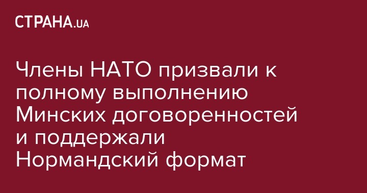"Мы призываем к полному осуществлению Мирных соглашений всеми сторонами и поддерживаем усилия формата Нормандии и Трехсторонней контактной группы. Ответ НАТО направлен на поддержку этих общих усилий, в том числе санкции, как это было решено Евросоюзом, G7, направленные на содействие мирному урегулированию конфликта", - говорится в декларации, принятой участниками ежегодного саммита НАТО в среду в Брюсселе, ее цитирует "Интерфакс-Украина".