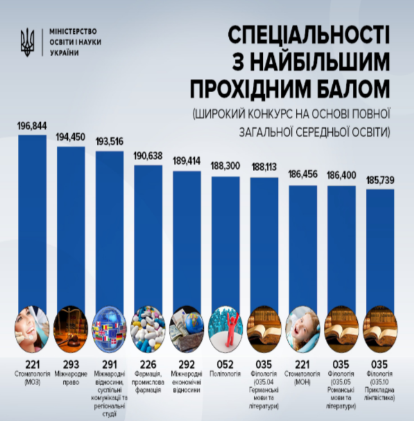 В ведомстве напомнили, что во время вступительной кампании 2017 года самый большой проходной балл был на специальности "стоматология", "международное право", "международные отношения" и "фармация" - более 190.