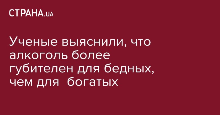 Согласно наблюдениям учёных, спиртное по-разному сказывается на здоровье богатых и бедных людей.
