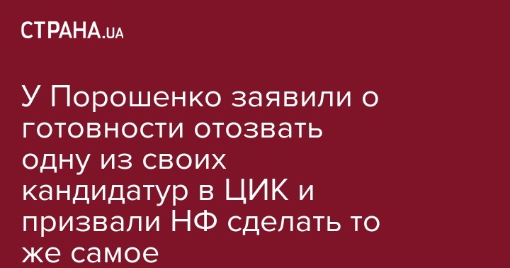 "Мы слышали предостережения относительно количества кандидатов на должности членов ЦИК. Фракция БПП готова отозвать одну из своих кандидатур для того, чтобы решить этот вопрос. Также мы слышали предостережения от наших коллег из НФ о том, что надо выполнять резолюцию ПАСЕ относительно представленности одной из фракций, у которой пока нет своего представителя. И мы обращаемся к нашим коллегам по коалиции также отозвать одну из своих кандидатур для того, чтобы решить и этот вопрос", - сказал Герасимов.