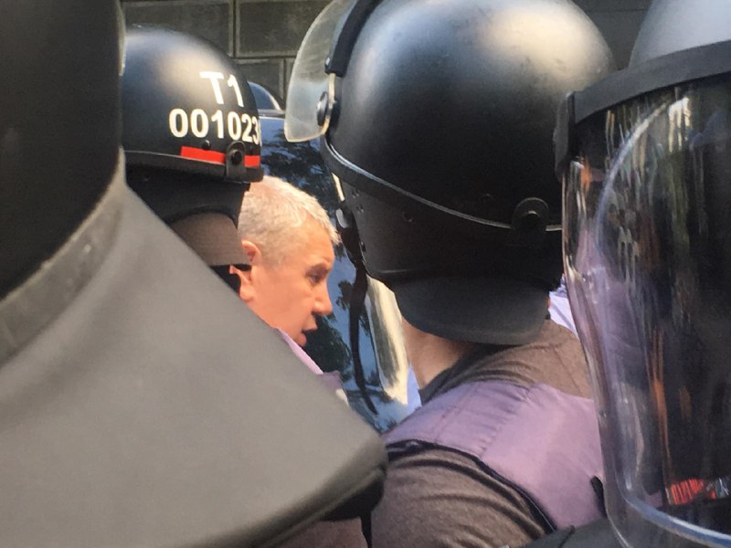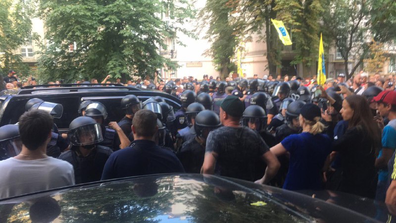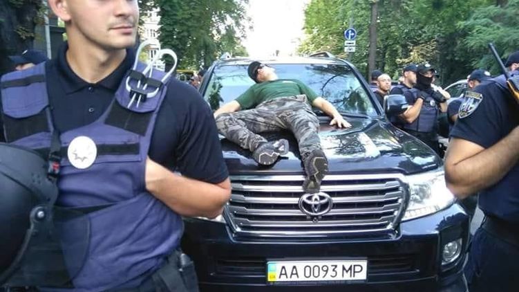 Активно действовала полиция - хотя протестующие заблокировали машину, всех, кроме водителя, вывели через созданный правоохранителями коридор.