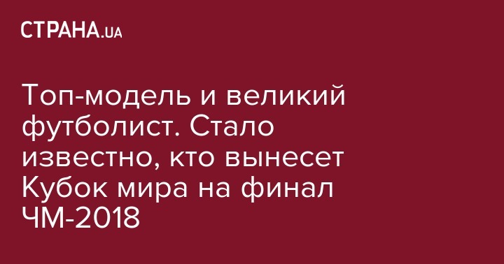 Топ-модель и великий футболист. Стало известно, кто вынесет Кубок мира на финал ЧМ-2018