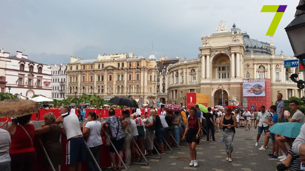 Фото: Сотни горожан и туристов пришли посмотреть на проход по красной дорожке/7kanal.com.ua