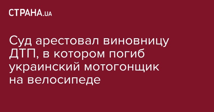 Киевский райсуд Харькова избрал меру пресечения для подозреваемой в совершении ДТП, в результате которого погиб украинский мотогонщик, в виде содержания под стражей сроком на 60 суток. Об этом сообщили в пресс-службе прокуратуры Харьковской области.