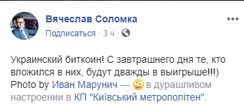 Популярной стала шутка о  новой украинской криптовалюте - метрокоине.