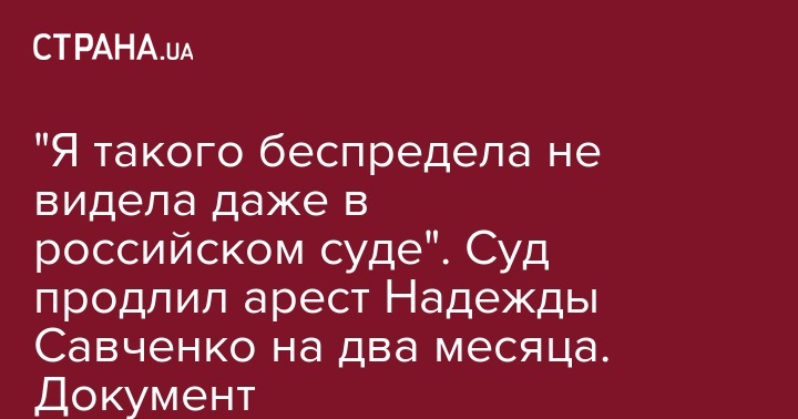 "Я такого беспредела не видела даже в российском суде". Суд продлил арест Надежды Савченко на два месяца. Документ