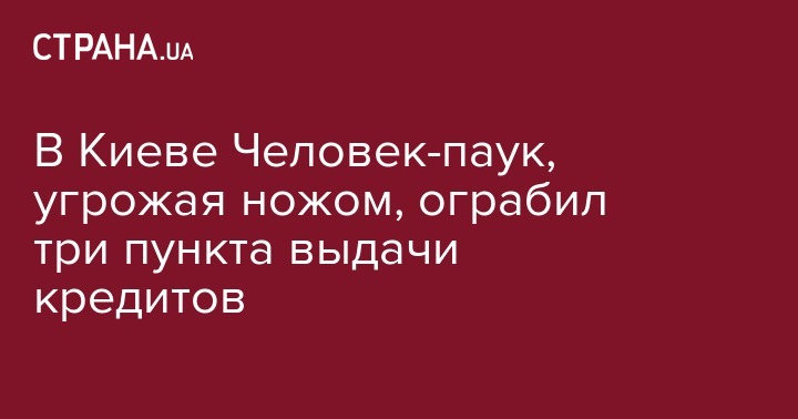 В Киеве Человек-паук, угрожая ножом, ограбил три пункта выдачи кредитов