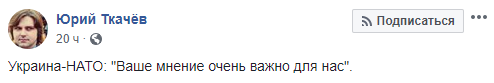 "Украина-НАТО: "Ваше мнение очень важно для нас", - сказано в сообщении.