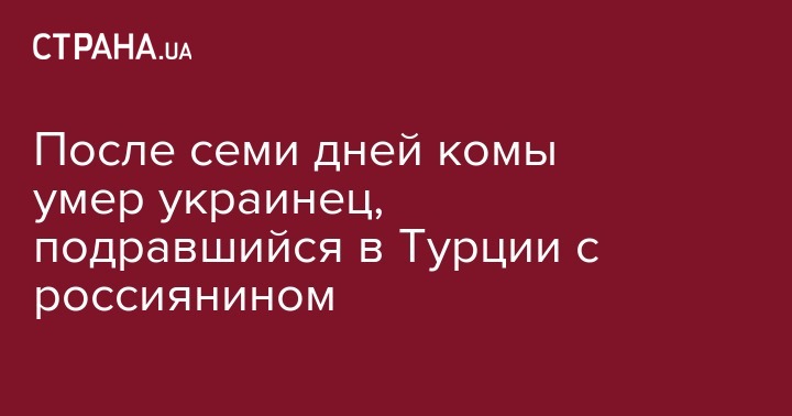 После семи дней комы умер украинец, подравшийся в Турции с россиянином