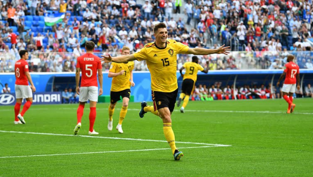Игра началась активно. На четвертой минуте Бельгия открыла счет. Ромелу Лукаку зацепился за мяч после мощно паса вперед от бельгийского вратаря Тибо Куртуа. Затем мяч получил бежавший по левому флангу атаки Насера Шадли, который прострелил в центр английской штрафной. Первым к мячу дотянулся Тома Менье. Он коленом с пяти метров замкнул прострел Шадли.