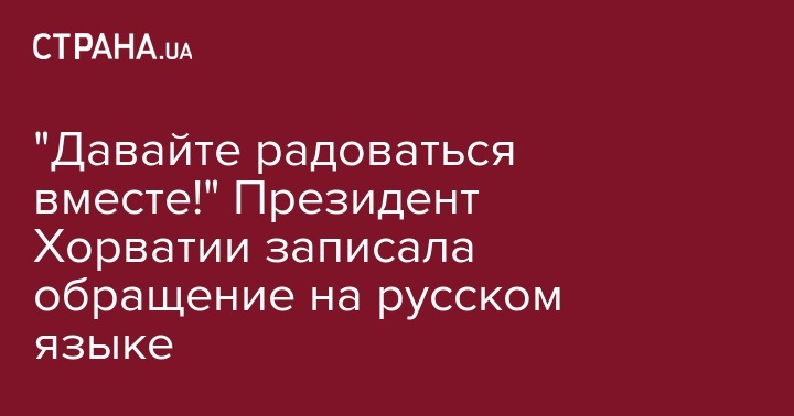 "Давайте радоваться вместе!" Президент Хорватии записала обращение на русском языке