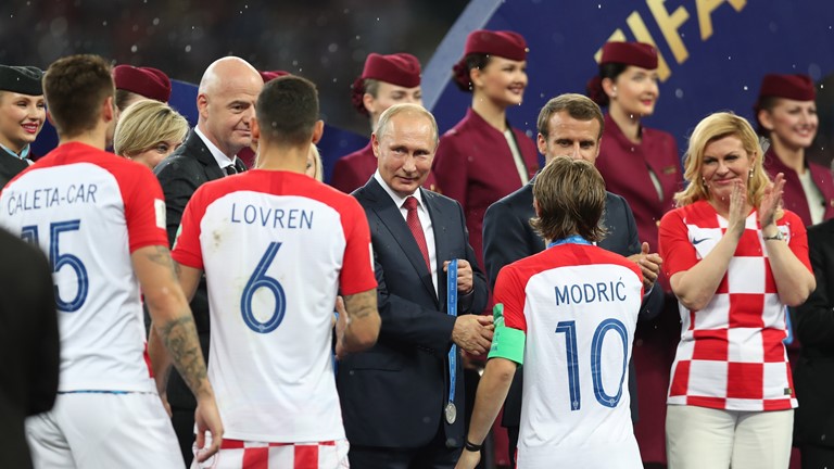 Для хорватов ЧМ-2018 окончился также невероятно. Вот, например, Ракитич радостно поздравляет капитана: