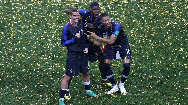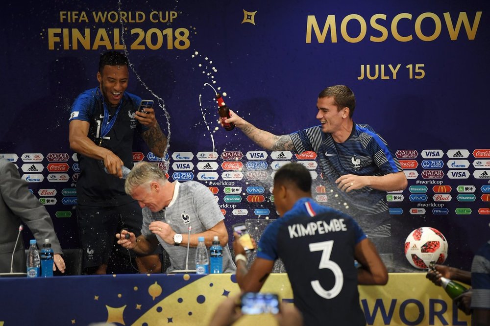 Также запомнился пивной душ для тренера сборной Франции Дидье Дешама, который ему устроили на радостях во время пресс-конференции игроки.