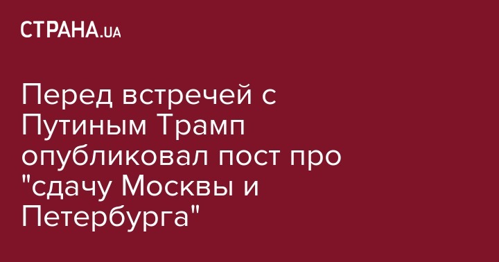 "Направляюсь в Хельсинки (Финляндию) жду с нетерпением встречи с президентом Путиным завтра. К сожалению, не имеет значения, насколько успешными станут переговоры, если даже мне отдадут Москву за все прегрешения и зло, которое совершила Россия... спустя годы я встречусь с критикой, что я не был достаточно хорош на саммите, потому что не получил еще и Санкт-Петербург в придачу!", – написал Трамп.