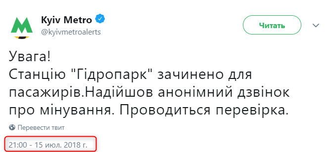 На официальном сайте метрополитена информации о закрытии станции нет. Ничего об этом не пишется и на сайте Нацполиции в Киеве.