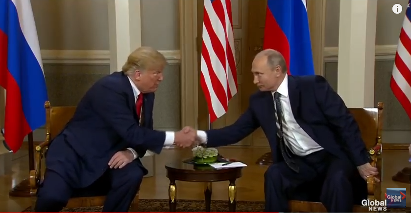 Появилось видео первой встречи Трампа с Путиным на саммите в Хельсинки