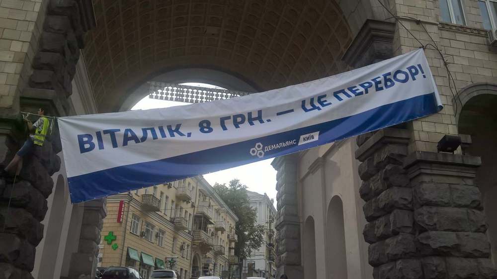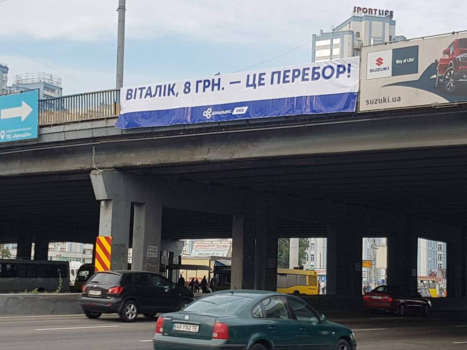 По Киеву развесили растяжки "Виталик, 8 грн - это перебор"