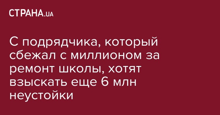 С подрядчика, который сбежал с миллионом за ремонт школы, хотят взыскать еще 6 млн неустойки