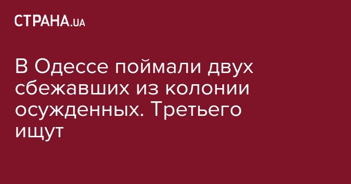 В Одессе после побега поймали двух из трех сбежавших из колонии преступников. Об этом сообщает глава Одесской полиции Дмитрий Головин в Facebook.