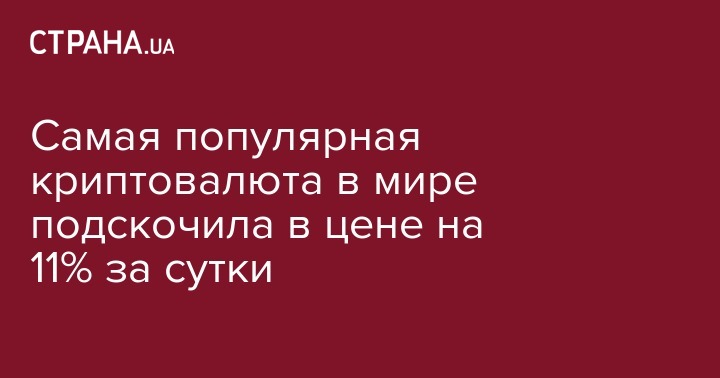 Самая популярная криптовалюта в мире подскочила в цене на 11% за сутки