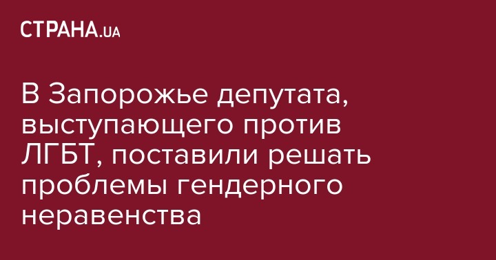 Депутат Запорожского облсовета ("Самопомощь") Владислав Марченко, который является открытым противником ЛГБТ-сообщества, назначен уполномоченным лицом по гендерным вопросам.