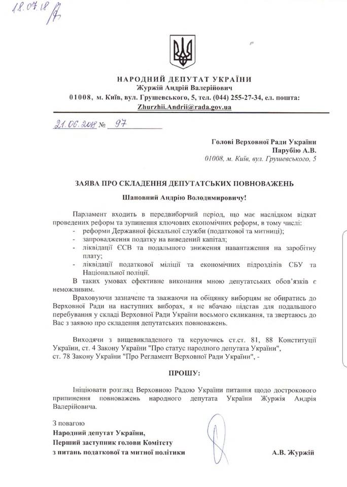 Нардеп Журжий из Самопомощи заявил о сложении полномочий