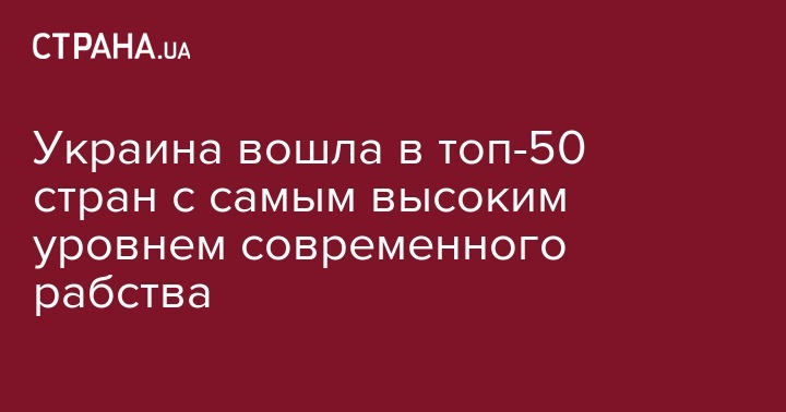 В рейтинге распространенности современного рабства в 2018 году Украина оказалась на 49 месте из 167 стран мира.