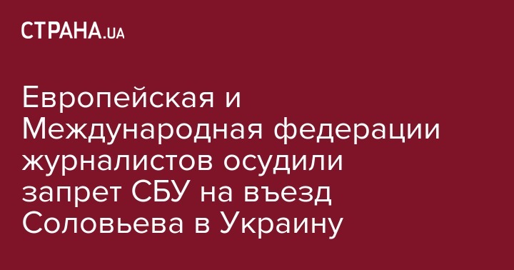 "Служба безопасности Украины запретила главе Союза журналистов РФ Владимиру Соловьеву въезд на территорию Украины сроком на три года. Международная и Европейская Федерация журналистов (IFJ и EFJ) осудила это решение, которое представляет угрозу для права на свободу выражения мнений", - говорится в сообщении.