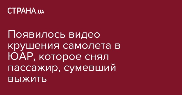 10 июня в ЮАР произошла авиакатастрофа недалеко от аэропорта Вондербум в Претории. Одному из пассажиров удалось записать видео крушения. Он сидел у левого крыла судна и снял загоревшийся двигатель самолёта.