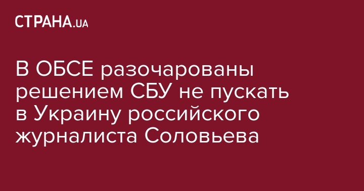 В ОБСЕ разочарованы решением СБУ не пускать в Украину российского журналиста Соловьева