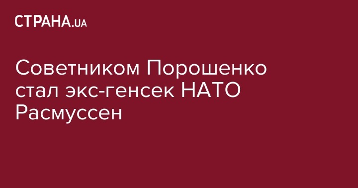 Советником Порошенко стал экс-генсек НАТО Расмуссен