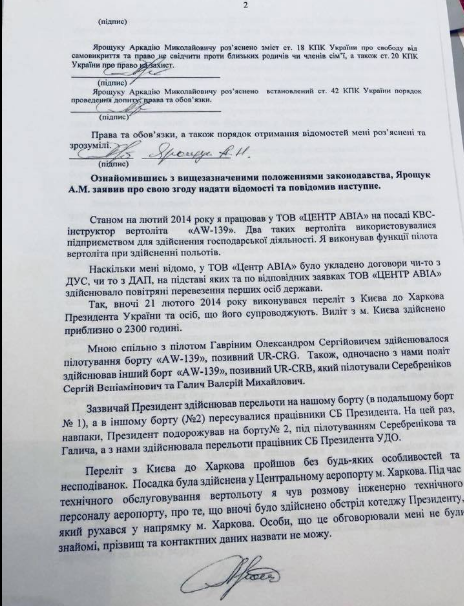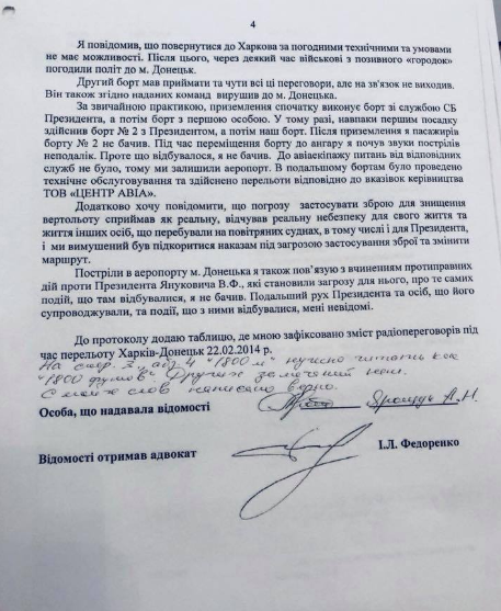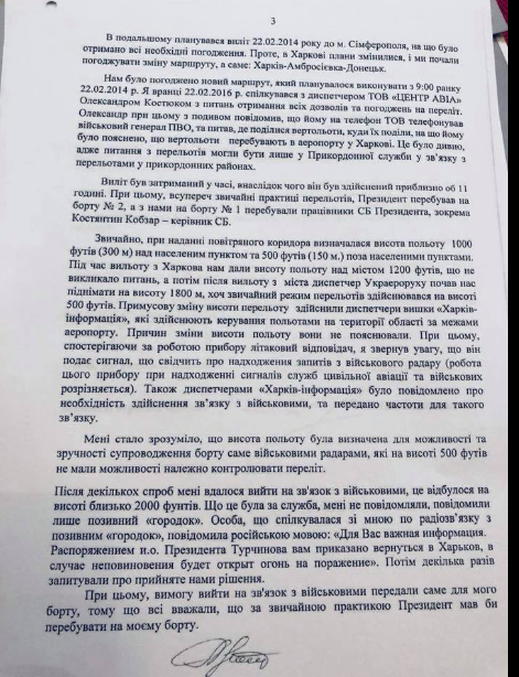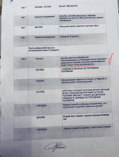 Также Виталий Сердюк опубликовал расшифровку переговоров экипажа с военным диспетчером. На ней диспетчер требует посадки вертолета угрожая "огнем на поражение", ссылаясь на указание и.о. президента Александра Турчинова.