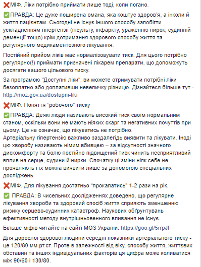 В Facebook она прокомментировала мифы, которые собрала врач-кардиолог Лариса Мищенко.