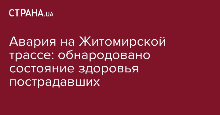 Стали известны подробности состояния здоровья пострадавших в ДТП на трассе Киев - Чоп. Об этом сообщает пресс-служба Житомирской ОГА.