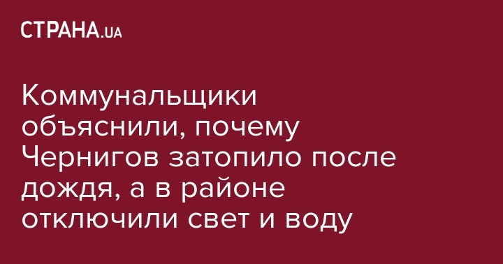 Сегодня 21 июля в Чернигове сильный дождь затопил канализационную насосную станцию на перекрестке улицы Кольцевой и проспекта Мира. Водоснабжение затопленных районов частично ограничат, так как "отводить канализацию сейчас некуда и первые этажи и частные дома могут быть подтоплены канализацией".