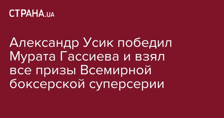 Украинский боксер Александр Усик добыл победу в финале Всемирной боксерской суперсерии, одолев россиянина Мурата Гассиева, объединив четыре пояса этой весовой категории (WBC, WBO, WBA, IBF), чей онлайн вела "Страна".