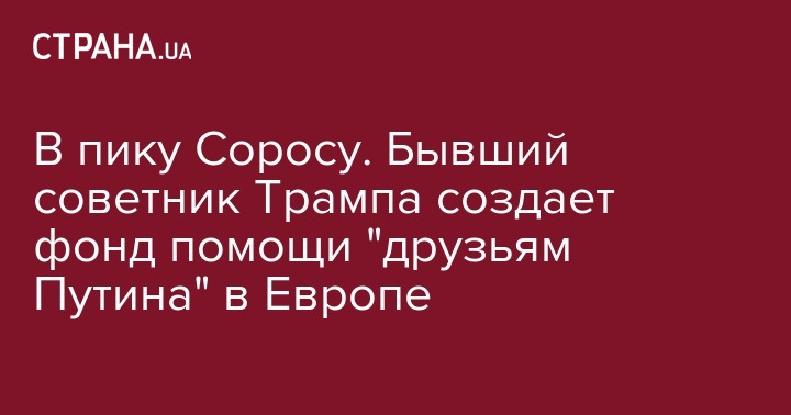 В пику Соросу. Бывший советник Трампа создает фонд помощи "друзьям Путина" в Европе