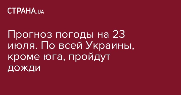 Сегодня, 23 июля, в Украине сухая погода ожидается только на юге и юго-востоке страны, на всей остальной территории страны – дожди и грозы, сообщает Укргидромецентр.