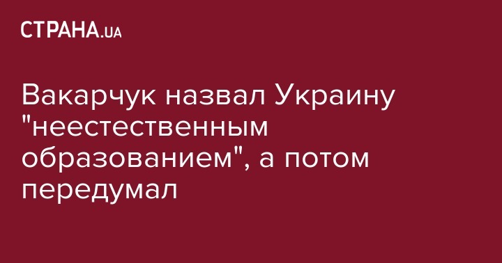 Спустя несколько часов в Twitter Вакарчука появилась запись, в которой он утверждает, что его слова исказили: "Украина природное образование" Уважаемые журналисты! НЕ передергивайте моих слов. И не распространяйте чушь. Спасибо!"
