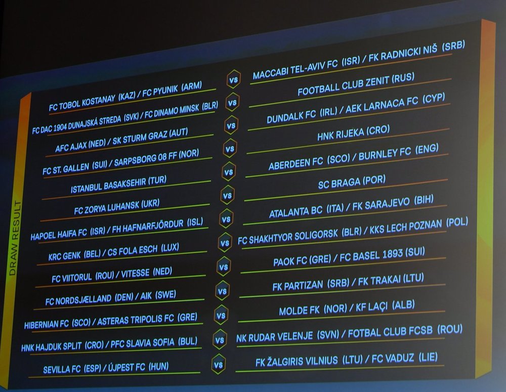 • "Севилья" (ESP) / "Уйпешт" (HUN) - "Жальгирис" (LTU) / "Вадуц" (LIE)