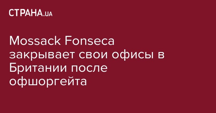 Скандальная Mossack Fonseca, одна из крупнейших мировых фирм офшорных регистраторов,  заявила о закрытии своих офисов в Британии. Соответствующая информация появилась через восемь недель после того, как были опубликованы разоблачительные "панамские досье".