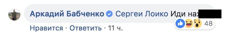 Спустя 11 часов в комментариях появился Бабченко и послал Лойко.