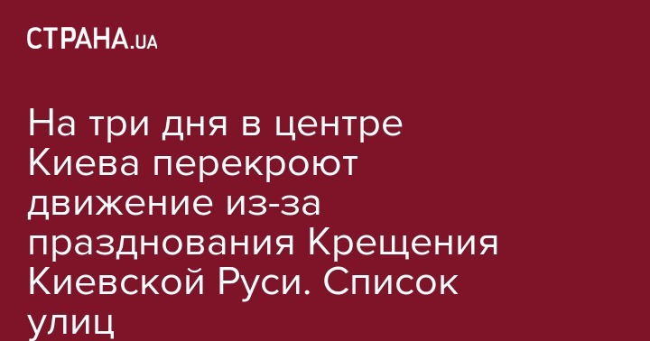 В столице пройдут торжественные молебны и крестные ходы, посвященные празднованию 1030-летия крещения Киевской Руси-Украины, в связи с чем предусмотрено ограничение движения всех видов транспортных средств.