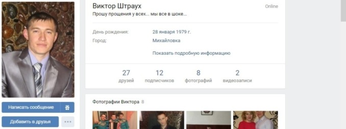 Скриншот личной страницы Виктора Штраух