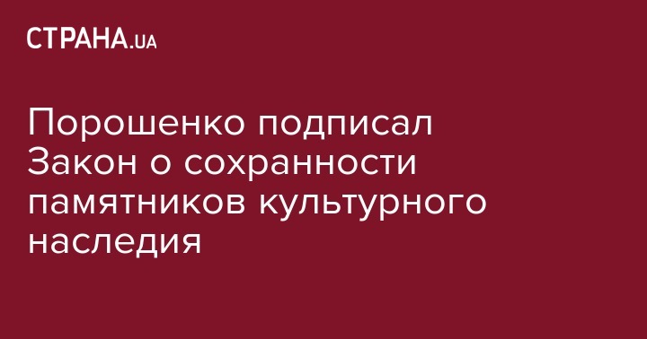 Порошенко подписал Закон о сохранности памятников культурного наследия