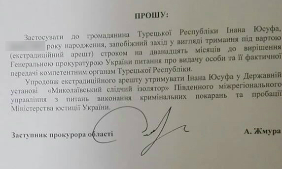 Вместе с тем она отметила, что до сих пор нет документального, письменного подтверждения экстрадиции мужчины в Турцию. "Ни прокуратура, ни СИЗО ничего не сообщают на мои адвокатские запросы о местонахождении Юсуфа", - прокомментировала защитница. В местной прокуратуре ей сообщили, что Генпрокуратура Украины на определенном этапе отстранила местных прокуроров от дела и сама начала заниматься вопросом экстрадиции. "Они отдали загранпаспорт Юсуфа в суде его жене. Значит, что они выдворили его из страны даже без паспорта", - добавила она.
