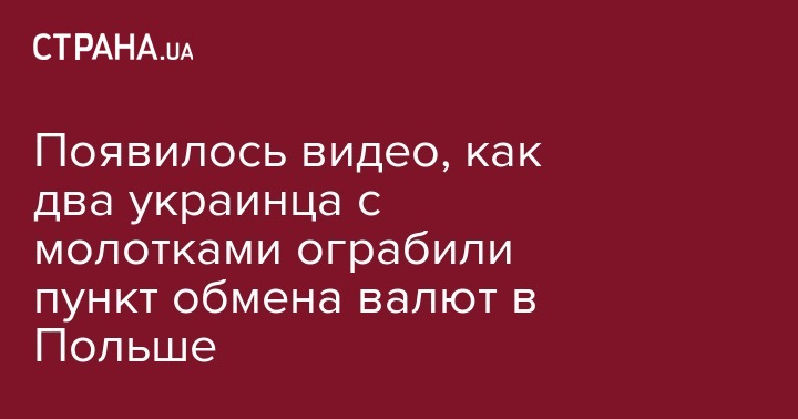 Двоим украинцам, 41 и 43 лет, грозит до 12 лет тюрьмы за разбойное нападение на круглосуточный пункт обмена валют на западе Польши. Как сообщила полиция, инцидент произошел в ночь с 15 на 16 июля в городе Жары Любуского воеводства, что на западе Польши, но сообщили о нем только 23 июля.