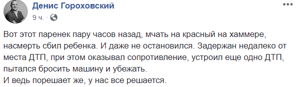 Вчера в Киеве не стало маленькой девочки. Что-то мне подсказывает, что сбивший ее и сбежавший молодчик на «Хаммере» безнадежно болен, возможно, патриот, активист, и все справочки уже рисуются.