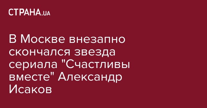 В Москве внезапно умер 39-летний Александр Исаков, артист Государственного театра киноактера РФ, известный по роли в популярном сериале "Счастливы вместе".