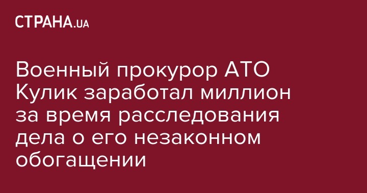 Бывший военный прокурор сил АТО, а сейчас заместитель начальника департамента международно-правового сотрудничества ГПУ Константин Кулик за время расследования против него о возможном незаконном обогащении официально заработал в органах прокуратуры 1 240 394 гривны.